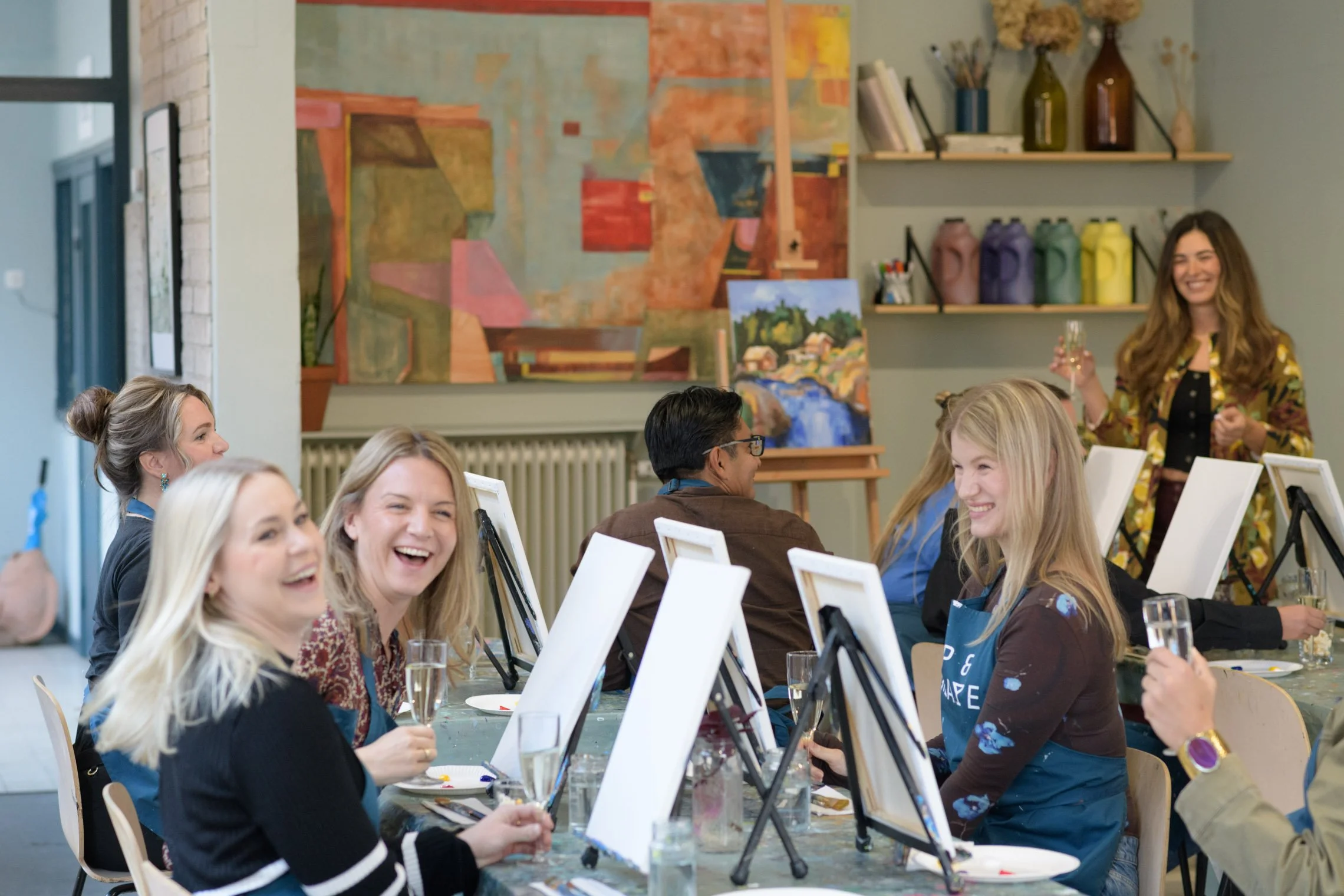 We provide all of the art supplies you need for your session. Your masterpiece will be painted on a 30x40 cm canvas and you will be using acrylic paint that dries quickly so you can decorate your walls straight after the event.